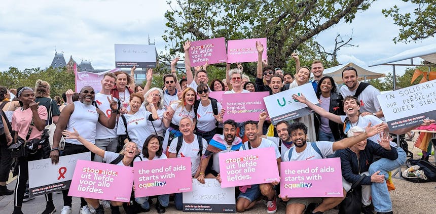 Aidsfonds neemt ook dit jaar deel aan de Pride in Amsterdam om de wereldwijde aidscrisis onder de aandacht te brengen. In de Pride Walk en de Canal Parade roepen we de politiek nationaal en internationaal op verantwoordelijkheid te nemen en een einde te maken aan aids.