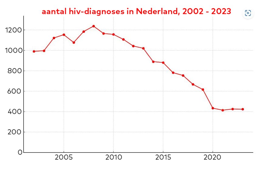 De nieuwe cijfers laten zien dat de daling in het jaarlijks aantal nieuwe hiv-diagnoses in Nederland stopt. Sinds 2010 daalde dit, maar de laatste paar jaar zet deze daling niet verder door. Terwijl het totaal aantal nieuwe hiv-diagnoses stabiel blijft met 424 geregistreerde gevallen in 2023, valt vooral op dat het aandeel van jongeren met een nieuwe hiv-diagnose toeneemt. Dit is met name zichtbaar bij jonge mannen die seks hebben met mannen (MSM).