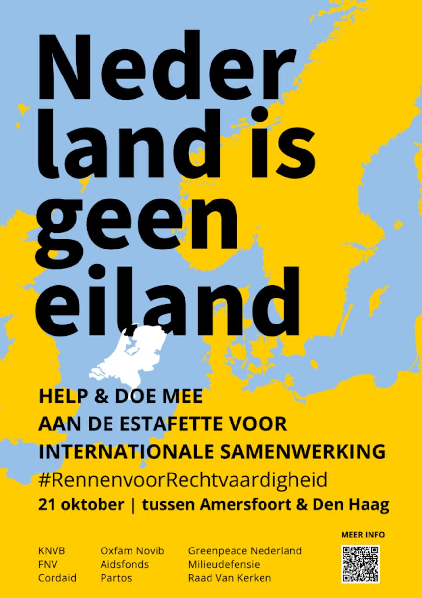 De wereld staat onder druk als nooit tevoren. Daarom is nu snoeien in ontwikkelingssamenwerking kortzichtig en onrechtvaardig. Samen roepen we de politiek op: investeer in ontwikkelingssamenwerking, want Nederland is geen eiland! Spreek je ook uit, en doe mee aan de marathonestafette langs de partijkantoren op 21 oktober.