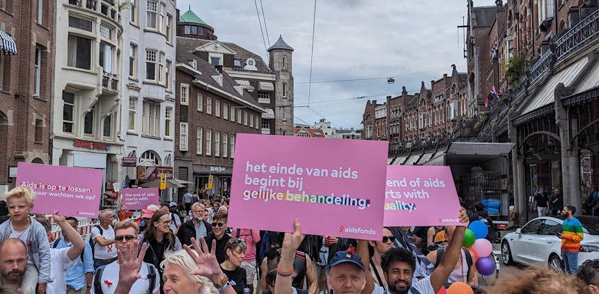 Op zaterdag 22 juli liepen duizenden mensen mee tijdens de Pride Walk om aandacht te vragen voor de rechten en acceptatie van lhbtiq'ers. De actualiteit in Oeganda maakte het protest dit jaar extra belangrijk. Ook in andere Afrikaanse landen dreigen er strengere anti-homowetten. Dat brengt de lhbtiq+'ers in levensgevaar en hiv-zorg aan hen onmogelijk. Dat mogen we niet laten gebeuren!