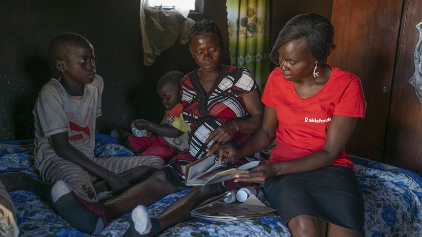 Erica begeleid ook kinderen met hiv. Als die al wat ouder zijn, moeten ze ook zelfstandig hun medicatie in kunnen nemen. Daar coacht ze hen bij. In het Aidsfonds-project waar Erica onderdeel van is, worden zo honderden vrouwen en kinderen door mensen als Erica geholpen om gezond te blijven.